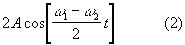 где w1 и w2 — соответственно угловые частоты двух накладывающихся гармонических колебаний (начальные фазы обоих колебаний полагаются равными нулю, т.к. они не играют роли в образовании Б.; играет роль только разность фаз между обоими колебаниями, которая всё время меняется от 0 до 2p).