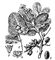 Фисташка настоящая: 1 — ветвь со зрелыми плодами и краевыми галлами на листьях; 2 — часть листа с ореховидными галлами; 3 — пестичный цветок; 4 — тычиночный цветок; 5 — плод с удалённой створкой.
