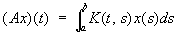 (где K (t, s) — ограниченная функция — ядро А) — непрерывен, в то время как определённый на подпространстве C1(a, b) Ì L2(a, b) оператор дифференцирования