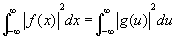 (теорема Планшереля). Формула (8) является обобщением на Ф. п. формулы Парсеваля (см. Парсеваля равенство) для рядов Фурье (см. Фурье ряд). Физический смысл формулы (8) заключается в равенстве энергии некоторого колебания сумме энергий его гармонических компонент. Отображение F: f (x) ® g (u) является унитарным оператором в гильбертовом пространстве функций f (x), — ¥ < x < ¥, с интегрируемым квадратом. Этот оператор может быть представлен также в виде