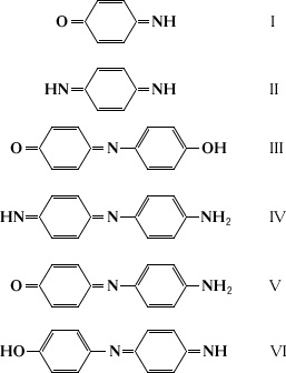 Хинониминовые красители, группа красящих веществ, производных n-хинонимина (I) или n-хинондиимина (II), в которых водород иминогруппы замещен на ароматический остаток, содержащий группы NH2 или OH-. К Х. к. относят индофенолы (III), индамины (IV) и индоанилины (V) или (VI). Вместо бензольных остатков соединения (III), (IV), (V) или (VI) могут содержать нафталиновые или иные арилы, а атомы водорода в них могут быть замещены на радикалы, например СН3.