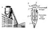 Циклон в промышленности, аппарат для очистки воздуха (газа) от взвешенных в нём твёрдых частиц (капель) под действием центробежной силы (рис.). Запылённый газовый поток обычно вводится со значительной скоростью в верхнюю часть корпуса Ц. через патрубок, расположенный по касательной или по спирали к окружности цилиндрической поверхности Ц.; в результате газ приобретает вращательное движение и движется по спирали сверху вниз, образуя внешний вихрь. При этом под действием центробежной силы инерции взвешенные частицы отбрасываются к стенкам Ц., опускаются вместе с газом в низ корпуса Ц. и затем выносятся через пылеотводящий патрубок. Очищенный от пыли газ поднимается кверху через выходную трубу, образуя внутренний вихрь, и выходит наружу. Получили распространение также Ц. с осевым вводом газа, в которых вращательное движение газовому потоку придаётся с помощью т. н. направляющего аппарата, выполненного в виде винтообразных лопастей (винта) или розетки с наклонными лопатками.