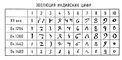 Прообразы современных Ц. (включая нуль) появились в Индии, вероятно, не позднее 5 в. н. э. [до этого в Индии пользовались Ц. карошти и наряду с ними нумерацией. Ц. которой сходны с буквами алфавита брами, см. в табл. 1 цифры из надписи в пещере Назик (или Насик)]. Удобство записи чисел при помощи этих Ц. в десятичной позиционной системе счисления обусловило их распространение из Индии в др. страны. В Европу индийские Ц. были занесены в 10—13 вв. арабами (отсюда и сохранившееся поныне их др. название — «арабские» Ц.) и получили всеобщее распространение со 2-й половины 15 в. Начертание индийских Ц. претерпело со временем ряд крупных изменений (см. табл. 2); ранняя их история плохо изучена.