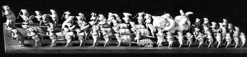 Богородская резьба. Ф. Д. Ерошкин. «Как мыши кота хоронили». Нач. 20 в. Музей народного искусства, Москва.