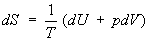 Согласно первому началу термодинамики (закону сохранения энергии), dQ = dU+pdV, т. е. сообщаемое системе количество теплоты равно сумме приращения внутренней энергии dU и совершаемой системой работы pdV, где р — давление, V — объём системы. С учётом первого начала термодинамики дифференциальное определение Э. принимает вид