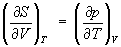 откуда следует, что при выборе в качестве независимых переменных внутренней энергии U и объёма V частные производные Э. связаны с абсолютной температурой и давлением соотношениями: