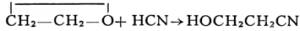 Этиленциангидрин, нитрил b-оксипропионовой кислоты, HOCH2CH2CN; бесцветная вязкая жидкость, tпл — 46°С, tkип 227—228°С (с разложением), плотность 1,040 г/см3 (25°С); смешивается во всех отношениях с водой, спиртом, эфиром, ацетоном, нерастворим в бензоле: растворяет эфиры целлюлозы и некоторые соли неорганических кислот. Получают Э. главным образом реакцией этилена окиси с синильной кислотой (в присутствии каталитических количеств цианида натрия NaCN или других щелочных агентов):