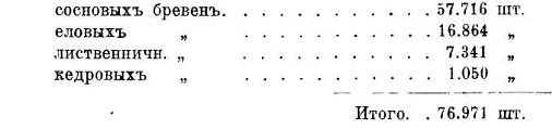 На основании изследования экспедициею этих, наиболее ценных, лесов Печорскаго края выяснилось, что годичный отпуск бревен указанных размеров составляет примерно: