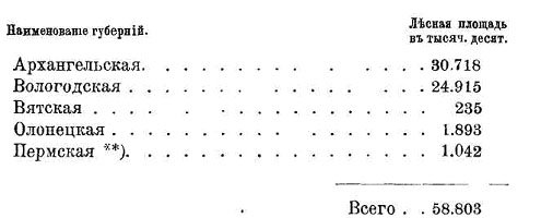 Впрочем, и из 5 северных губерний не везде сохранился этот, пагубный для обеих сторон, способ полуприисковой выборочной рубки; пример Олонецкой губернии, отпускающей, при одинаковом числе лесничеств с Архангельской, равное число дерев, по полутора миллионов в год, но клейменными на пне, доказывает, что у нас есть действительныя основания считать это возможным и для архангельских лесничеств, при некотором увеличении числа стражи и лесных кондукторов.