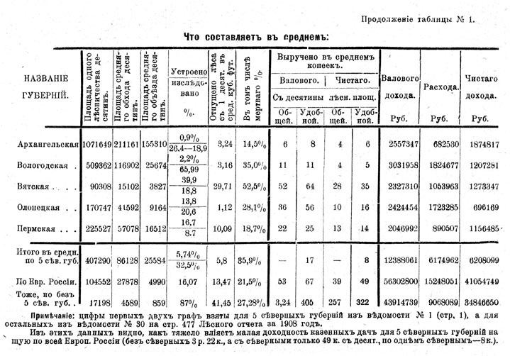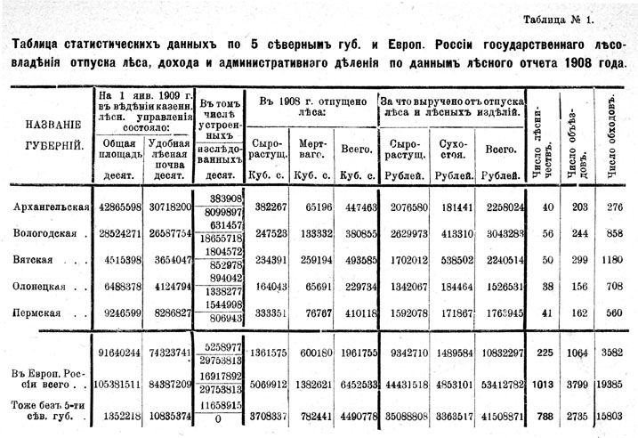 Леса Севера Европейской России несомненно представляют огромное богатство, значение котораго еще недостаточно оценено. Эти леса служат важнейшим фондом, который должен обезпечивать нужды в лесных материалах во многих местностях России, сообщающихся с Севером и несомненно район этих местностей будет все более и более раздвигаться; с другой стороны, эти леса еще долгое время будут служить источником обезпечения за Россией того первенствующаго положения, которое она заняла на большинстве европейских лесных рынков. В этом смысле значение названных лесов тем более велико, что большая часть обширных лесных пространств Сибири, по невыгодности их географическаго положения, не может составить конкуренции лесам Севера Европейской России, сообщающимся целою сетью удобных водных путей с морем и с мировым лесным рынком.