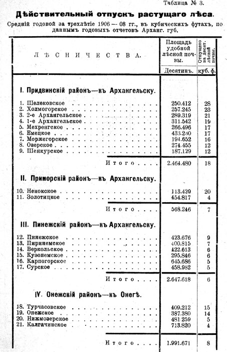 Принимая, что железная дорога может обслуживать непосредственно лишь 30 верстную полосу (по 15 вер. с каждой стороны), и исключая безлесныя 150 вер., ближайшая к Архангельску, площадь непосредственно пересекаемаго дорогой лесного района может быть примерно принятой в 3,3 милл. десятин.