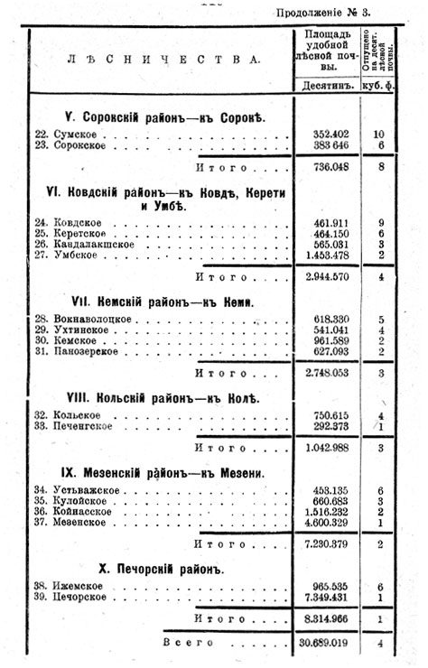 При 10 верстной полосе гужевого подвоза леса к рекам (по 5 вер. с каждой стороны) Печорскаго и Мезеньскаго бассейнов, лесная площадь, имеющая войти в район проэктируемой дороги через посредство водных путей, пересекаемых дорогой, составить около 5,5 милл. десятин. Таким образом вся площадь лесов, имеющая практически войти в район проэктируемой дороги, составит около 21 милл. десятин.