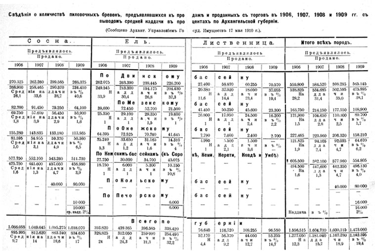 В настоящее время Архангельским лесопромышленникам приходится идти на крупныя таксовыя надбавки, чтобы иметь нужный для заграничнаго рынка высокосортный толстомерный лес. Сибирские и Уральские леса еще почти не тронуты топором и пилой, и надо думать, что одной своей количественной массой они дадут легкий выбор для высокосортных сортиментов, которые будут обходиться в Архангельске дешевле таковых же из бассейна С. Двины.