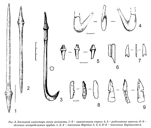 Большинство стоянок каменного века не сохраняют органические материалы, и поэтому изделия из кости встречаются достаточно редко. На Севере Восточной Европы в настоящее время известно несколько мезолитических культур, где имеются представительные коллекции изделий из кости (веретье, бутовская, кунда), хотя следует отметить, что орудия из кости сохраняются далеко не на всех стоянках перечисленных культур. Вот почему любые находки костяных изделий, сохранившиеся на мезолитических стоянках в силу благоприятных почвенных условий, представляют большой научный интерес и придают большую достоверность историческим реконструкциям.