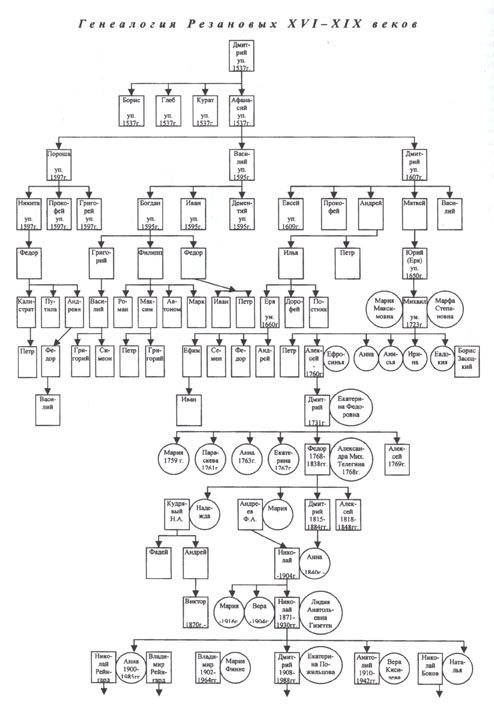 Куркинская линия Резановых пошла по младшей ветви Афанасия от его сына Дмитрия.