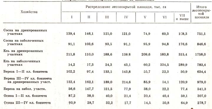 Что касается насаждений, занятых ныне лиственными породами, проведенные исследования ряда авторов (К. П. Чупров, Г. С. Воинов, Г. Л. Лиогенький и др.) показывают, что сохранение площади за лиственными породами в перспективе имеет смысл лишь для высоких бонитетов (I – II), для выращивания в березняках фанерного кряжа, а в осинниках – в короткий срок получать балансовое сырье без гнили.