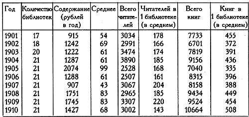 Так, в Вологодской губернии в 1910 году было 897 библиотек, в Воронежской — 828, в Пермской — 733 и т. д.”[15]