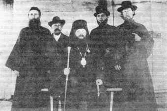 Публикуемый снимок (фото 1901 г.) раскрывает еще один яркий штрих биографии Т. Н. Шаламова - его соприкосновение с судьбой будущего патриарха Московского и всея Руси Тихона (Белавина), в то время - епископа Русской Православной миссии на Аляске. На снимке - в центре. Крайний справа - священник Тихон Шаламов.