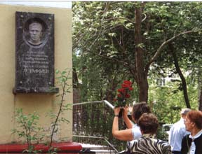 | Мемориальный знак на доме в г. Перми по ул. Ленина, 84, в котором жила семья Астафьевых | Дни памяти В. П. Астафьева. 30 ноября 2004 г. Председатель Комитета по культуре и искусству г. Дивногорска Красноярского края Василий Обыденко, заместитель губернатора Пермской области Татьяна Марголина, председатель Департамента культуры и искусства Пермской области Ольга Ильиных |