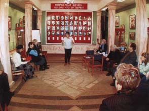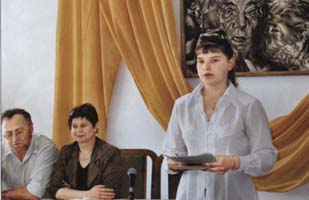 | Юная участница Малых (детских) Астафьевских чтений. Май 2005 | Третьи Астафьевские чтения. Рабочий момент. Директор Мемориального центра «Пермь-36» Виктор Шмыров и литературный критик Валентин Курбатов |