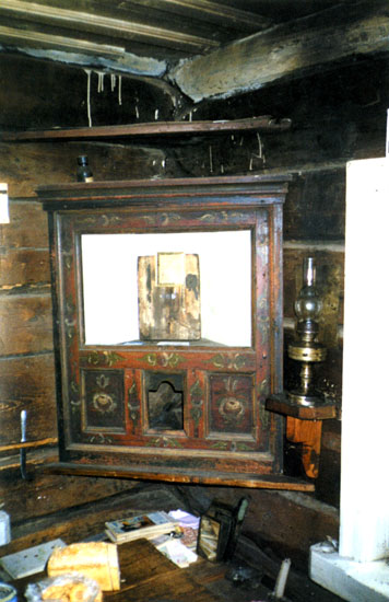 К статье А. А. Желтова. Деревянная божница в доме М. Ф. Омшева в д. Пелкасская. Фото А. А. Желтова