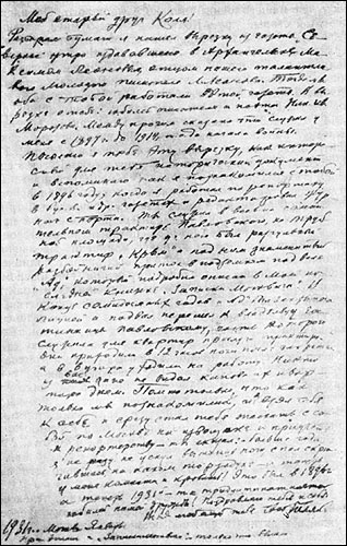 Факсимиле письма В. А. Гиляровского Н. И. Морозову