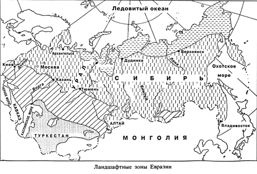 Территория раннего распространения средних и восточных славян предварительно совпадала с той местностью, что позднее стала известна как Украина. Около восьмого века нашей эры они распространились на более широкой территории, которая теперь называется Европейской Россией, но, возможно, может быть лучше обозначена как Западная Евразия, понятие "Евразия" объединяет регионы европейской и азиатской России воедино[4]1. Западная Евразия таким образом может рассматриваться как первая, единая древняя и средневековая стадия русской экспансии, а Евразия - как целое в качестве ее второй и завершающей стадии.