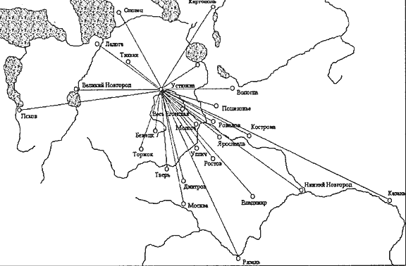 До конца XV века Устюжна оставалась небольшим городским поселением на северо-западной окраине Московского княжества, практически на границе с Новгородской землей. Даже в начале XVI века в грамотах великих московских и удельных князей она значится как центр волости, "тянущей"* (Тянущей - в данном случае - примыкающей в административном отношении.) к городу Угличу67.