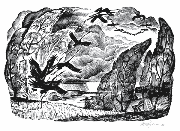 61. Журавли. 1972. Бумага, ксилография. 13,3x19,8.