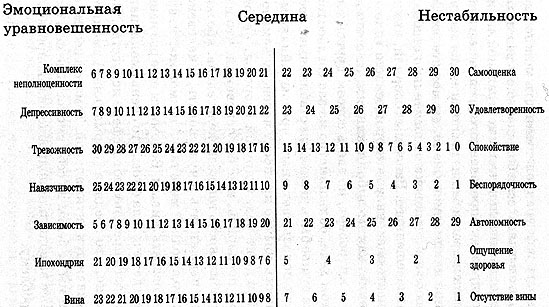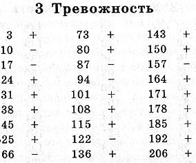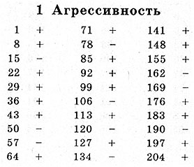 Дополнительно к одиннадцати основным шкалам мы предлагаем вам еще две составные шкалы, с помощью которых вы сможете определить уровень своей сексуальной удовлетворенности и либидо (объяснение значений этих понятий и структура шкал будут приведены вслед за ключами к тексту). И в заключение дана шкала маскулинности - фе-мининности, охватывающая все те вопросы, на которые ответы мужчин и женщин существенно различаются, т.е. на которые мужчины отвечают "да" или "нет" гораздо чаще, чем женщины. Три этих шкалы также сопровождаются таблицей, на которую читатели могут спроектировать профиль своих ответов, чтобы сравнить его со средним нормативным. (Для мужчин и женщин предлагаются отдельные графы, ибо различия весьма велики.) По всем этим шкалам баллы подсчитываются точно так же, как и по другим личностным шкалам. Ключ содержит номера вопросов, включенных в данную шкалу, и к каждому из них знак "+" или "-". Допустим, вы имеете номер 14, а рядом знак "-" это означает, что, ответив на вопрос 14 "нет", вы получаете один балл, ответив "да", вы не получаете баллов, а выбрав ответ " ? ", вы имеете полбалла. Если бы после вопроса 14 стоял знак "+", тогда ответ "да" принес бы вам один балл, ответ "нет" - ни одного балла, а ответ "?" по-прежнему полбалла.