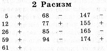 Второй фактор социальных предпочтений называется "расизм". Люди с высокими баллами по данной шкале выступают против иммиграции представителей других рас, проповедуют расовую сегрегацию внутри своей страны, уверены в том, что все другие расы уступают белой расе и поэтому "должны знать свое место". Такие люди, как правило, разделяют антисемитские настроения и вообще настроены резко враждебно по отношению к представителям других рас и национальностей. Те, кто набрал низкий балл по данной шкале, держатся противоположных взглядов, очень терпимо относятся к этническим меньшинствам, одобряют иммиграцию представителей всех рас и не сомневаются в равенстве всех людей и народов. Ключ для данной шкалы приведен ниже.