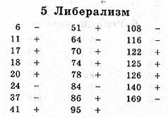 Вы можете подсчитать свои баллы по каждому из этих факторов и получить таким образом информацию о своей позиции на диаграмме. Оценка по шкале "радикализм - консерватизм" подсчитывается по следующей формуле: