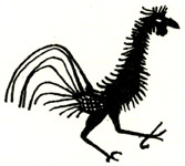 Прекрасные образцы этого периода городецкой художественной резьбы, помню, видел я в музеях Москвы, Ленинграда, Горького, Городца, Загорска. Черные кони на них — мощные, крупнокорпусные, широкогрудые, поднявшиеся на дыбы, с гривой, как щетка, с хвостом, где четыре или пять условных волос-черточек, с паром из ноздрей, похожий на лучи, с всадником в треуголке, украшенной перьями, в мундире с поясом и штанах с лампасами. Или же возле дерева (не древнего ли языческого «древа жизни»?) парные всадники — и опять на вздыбленных конях. Иногда барская карета, сцена охоты или шеренга солдат. Головки прялок тоже с резьбой и инкрустацией: конь и птица, похожая на индюка. Побывав в Курцеве, Коскове и Савине — центрах городецкой резьбы и росписи, — я поразился, сколько бродит возле домов индюшек с индюшатами, и понял, почему именно эга птица появилась на прялках.