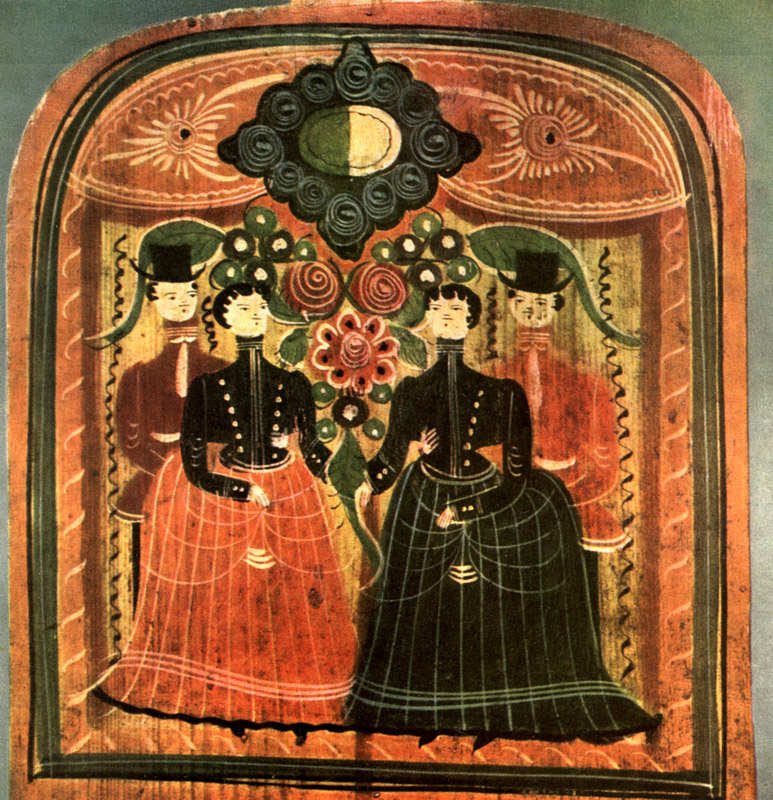 Снова вспомнился «Питерщик» Писемского, но на этот раз те строки, где маляр Клементий говорит, что цветы он наносит по трафарету. А ведь тут полная непосредственность, настоящее народное искусство. Нет, здесь действительно работали не костромичи, не молвотинцы.