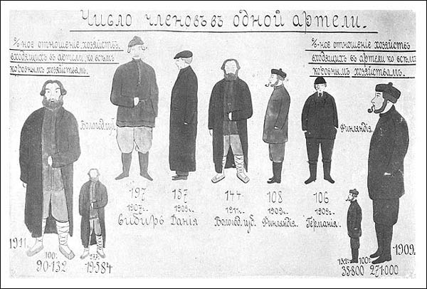 Темы: а) число членов во всех артелях Вологодской губернии и Финляндии (порознь), б) процентное соотношение хозяйств, входящих в артели, ко всем коровным хозяйствам в Финляндии и Вологодской губернии, в) число членов в одной артели в Вологодской губернии, в Сибири, в Финляндии, в Дании и Германии. |