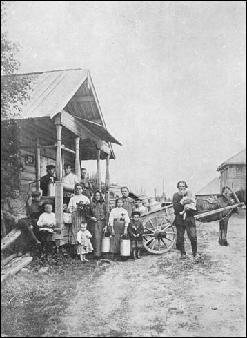 Радиус действий артели в среднем — 2,77 верст. Молоко на завод доставляется или на руках или возчиками; последние имеются у 2/3 артелей. Молоко перед отправкой на завод взвешивается или особым „приемщиком" из жителей селения, или самим возчиком. „Тару" (пустую металлическую посуду) возчик чаще всего возит с собой; он же развозит „обрат" (снятое молоко) и пахту. В тех артелях, где возчиков нет, обрат и пахта уносятся самими артельщиками. Нередко возчики обязуются пропускать привезенное ими молоко через сепаратор. Возчики — самая многочисленная категория рабочих (3,1 чел. на артель). |