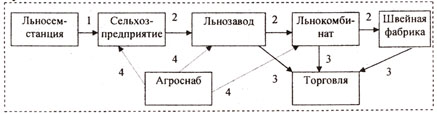1 — поставка семян; 2 — сырье; 3 — готовая продукция; 4 — поставка материально-технических ресурсов