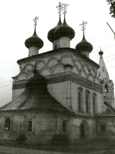 Церковь Иоанна Предтечи сооружена в 1810 году в стиле классицизма. Живописно скомпонованные объемы поражают многообразием форм. Оригинальная черта композиции – скругленность всех частей, мягкость и плавность форм. Четырехколонные портики придают парадность фасаду [44]. Основная часть этой сложной композиции – ротонда – прежде была увенчана высоким световым барабаном с куполом.
