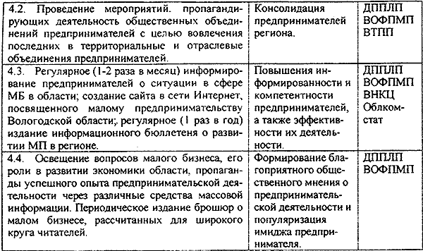 При разработке программы и планов дальнейшего развития малого предпринимательства в области целесообразно, по-нашему мнению, учесть следующие мероприятия (табл. 6):