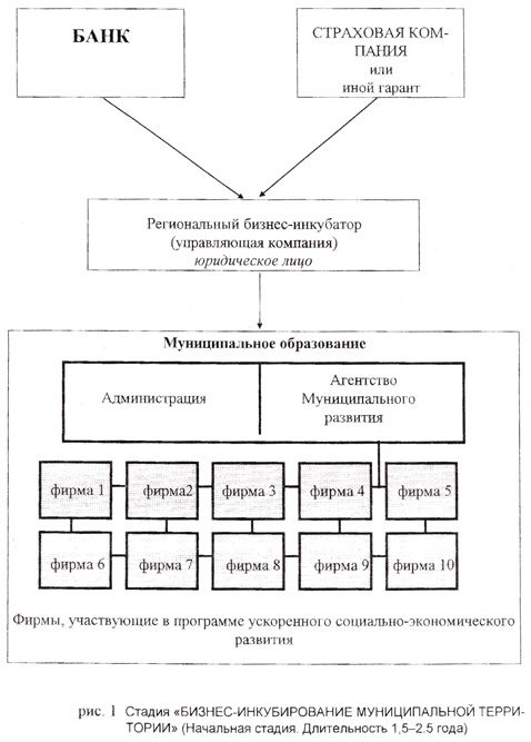 Но модификация регионального бизнес-инкубатора не только в переориентации его специализации с инкубирования отдельной фирмы на инкубирование целой административной территории. Задача такого бизнес-инкубатора - обеспечить гарантии быстрого преодоления депрессивных явлений и запустить процесс активного саморазвития муниципального образования. В этих целях становится достаточным простое бизнес-инкубирование. Необходимым требованием начинает выступать право бизнес-инкубатора вмешиваться в организационно-управленческие процессы выращиваемого субъекта. Где в форме консультации, а где и в форме административного права. Таким образом, бизнес-инкубатор обретает признаки трастовой структуры (причем не только в сфере финансового управления), являясь центральным ядром проекта. То есть региональный бизнес-инкубатор выступает главной организующей структурой всего проекта, выполняя роль генерального подрядчика для инвестора (инвесторов) и муниципального образования, заказчика для лизинговой компании, и управляющего координатора деятельности всех вовлеченных в проект структур. Все денежные потоки идут через бизнес-инкубатор.