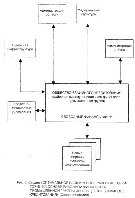 Для этого поставленные на ноги фирмы в результате нахождения в режиме бизнес-инкубирования, прививающего им навыки здорового корпоративного мышления, под воздействием инкубатора создают общество взаимного кредитования для обеспечения дальнейшей устойчивой работы и расширения своей деятельности на территории муниципального образования (Рис 2 ).