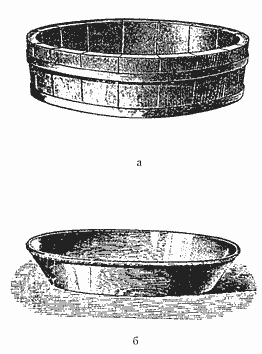 Рис. 6. Отстойная посуда (голштинский метод:) а - деревянный бак; б - жестяной таз |