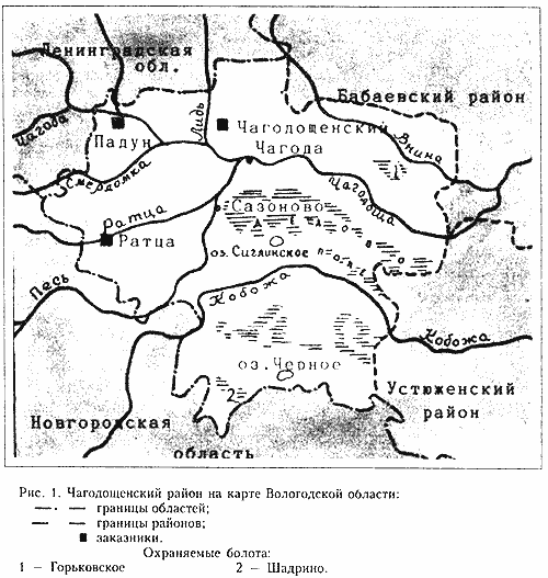 Решать проблему охраны природы, сохранять для потомков неизмененные ландшафты помогают и учрежденные заказники на территории района. Самый крупный из них - Чагодощенский, площадью 4699 га. Он находится на границе с Ленинградской областью в 5 км от пос. Чагода, примыкая к его зеленой зоне. На западе вдоль границы протекает чистая река Лидь, в южной части расположено оз. Тоцкое, придающее особую живописность ландшафту. 74% территории заказника занимают леса, среди которых преобладают сосняки, на втором месте березняки, а ельники занимают всего 140 га (4%) площади. Основное назначение заказника заключается в сохранении всех видов живых организмов и типичных природных комплексов. Помимо этого он может служить генетическим резерватом лесообразующих пород и охотничьей фауны10.