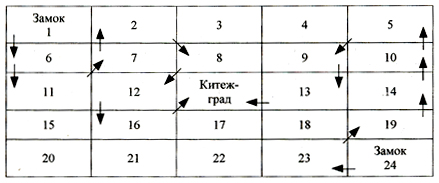 2 маршрут —24 —> 23 —> 19 —>14 —> 10 —> 5 —>9—>13 —> Китеж-град (маршрут можно делать короче или длиннее, игровое поле-лабиринт больше или меньше и т. д.)