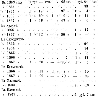 Для Вятской губернии: высшую 1 руб. 15 коп., низшую 93 коп. и среднюю 1 руб.