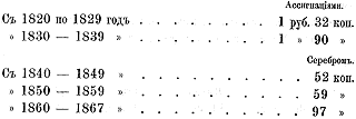 В 1867 году 5 руб. 60 коп., 3 руб. 25 коп., 4 руб. 42 коп.
