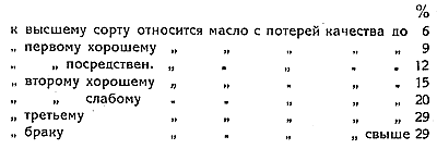 Что же представляет собою высокосортное, беспорочное масло? - Для ответа на этот вопрос нет необходимости описывать подробно каждое качество из принятых в существующей системе, как элементов оценки. Для потребителя яснее будет, если мы скажем, что высокосортным будет то масло, которое не имеет никаких пороков, то есть качество его стопроцентно.