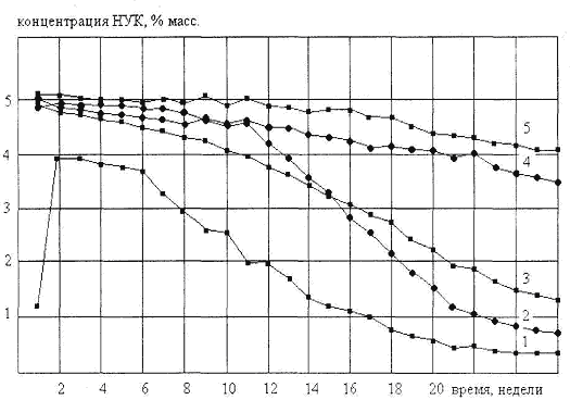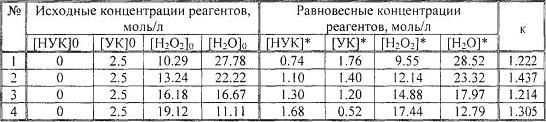 Как видно из полученных результатов, равновесная концентрация НУК устанавливается достаточно быстро, причем, время установления равновесной концентрации НУК и фактическая концентрация НУК в равновесном растворе определяется, в основном, начальной концентрацией пероксида водорода.