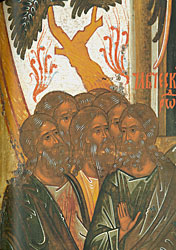 Четкость и выверенность рисунка, компактность расположения фигур и симметрия в построении композиции, насыщенный колорит с белильными оживками-»светами», заставляющими гореть темно-зеленые и густые охристые краски, мерцание золота, отливающего холодным зеленым блеском — все это делает памятник необычайно притягательным.