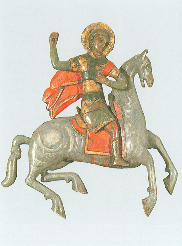 В вологодских церквах и храмах особое место занимала деревянная скульптура - изображения наиболее почитаемых святых - Николы, Георгия, Параскевы, и статуи, украшавшии резные иконостасы. Наиболее ранними произведениями деревянной скульптуры в собрании музея-заповедника являются горельефы Георгия Победоносца и Параскевы Пятницы (вторая половина XVI в., илл. 67, 70).